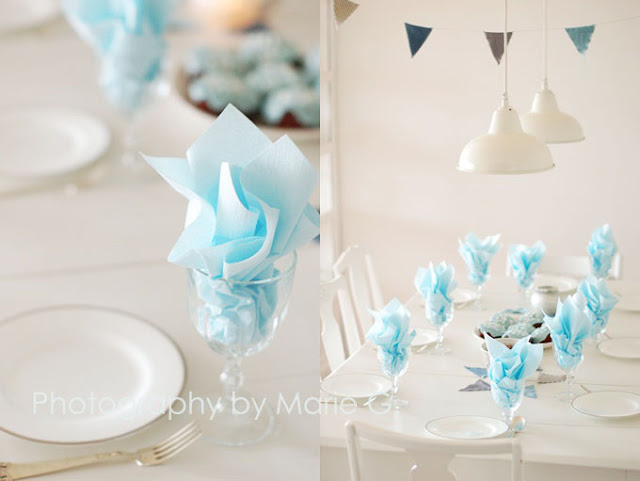 Så delikat med hvitt og lyseblått,helt lekkert!